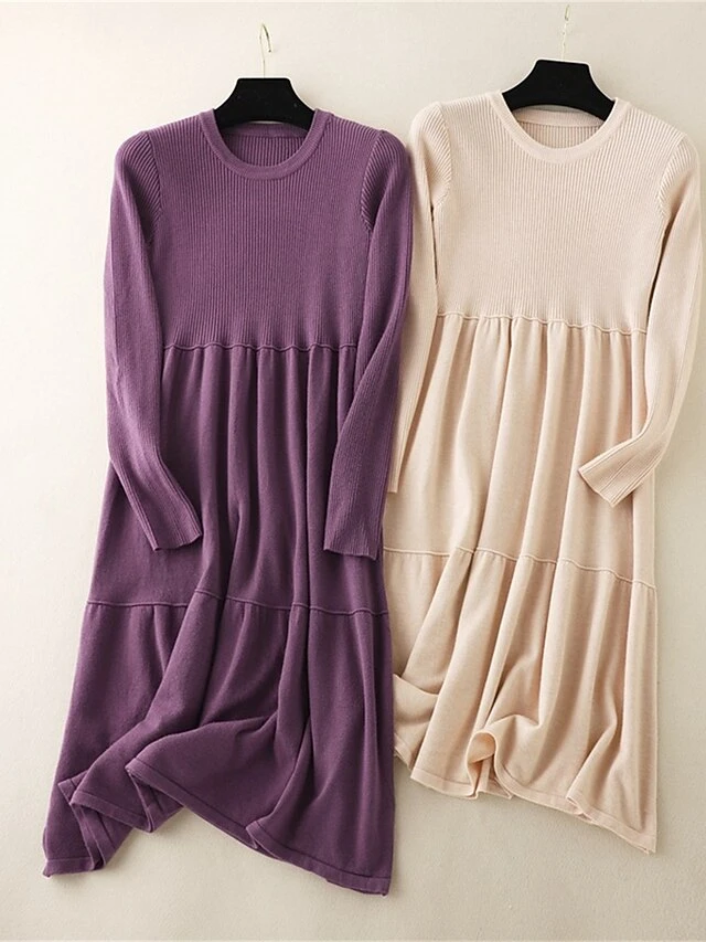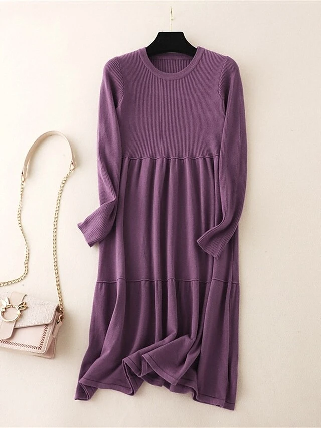 Women’s Sweater Dress Jumper Dress Casual Dress Midi Dress Active Plain Outdoor Casual Holiday Vacation Crew Neck Long Sleeve Ruched 2023 Loose Fit Black Red Blue One Size