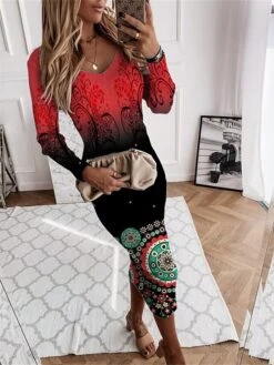 Women’s Sweater Dress Jumper Dress Casual Dress Midi Dress Warm Floral Outdoor Daily Going Out V Neck Long Sleeve 2023 Regular Fit Red Blue Green S M L XL XXL 3XL