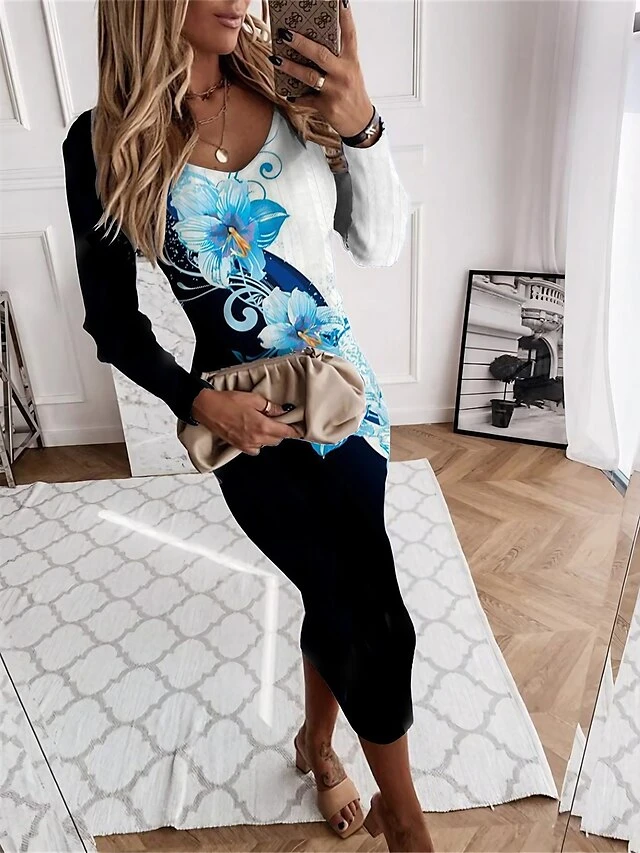 Women’s Sweater Dress Jumper Dress Casual Dress Midi Dress Warm Floral Outdoor Daily Holiday Vacation V Neck Long Sleeve 2023 Regular Fit Red Blue Green S M L XL XXL 3XL