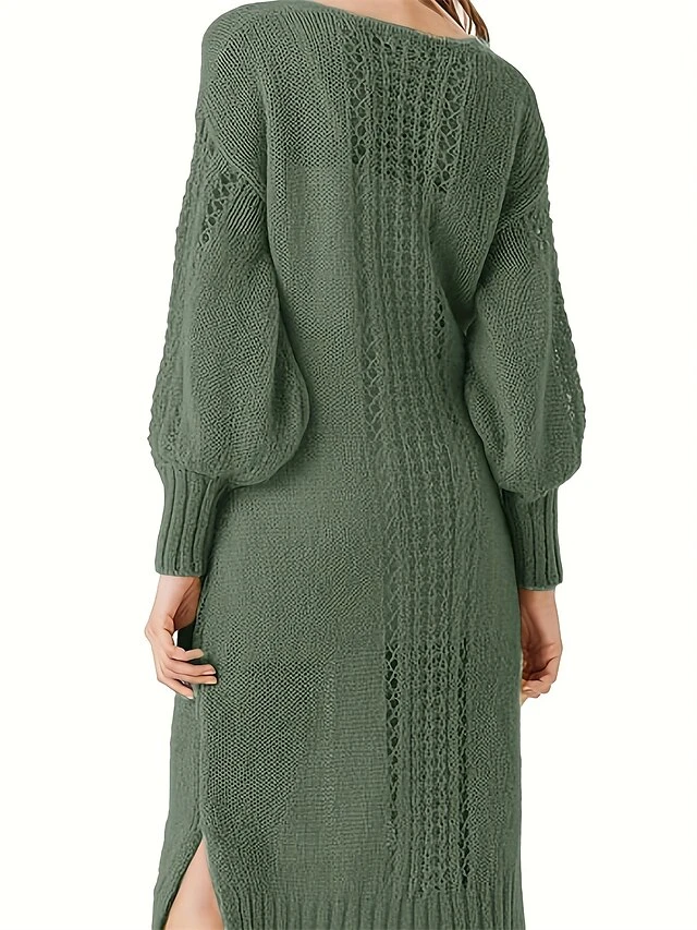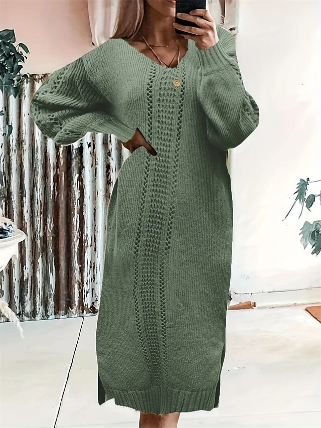 Women’s Sweater Dress Jumper Dress Casual Dress Midi Dress Warm Pure Color Outdoor Casual Daily Going Out V Neck Long Sleeve 2023 Loose Fit Green S M L