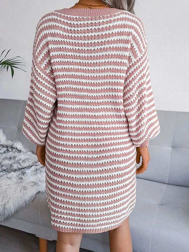 Women’s Sweater Dress Jumper Dress Casual Dress Mini Dress Active Multicolor Outdoor Casual Daily Holiday V Neck Long Sleeve Patchwork 2023 Loose Fit Pink Blue Khaki S M L