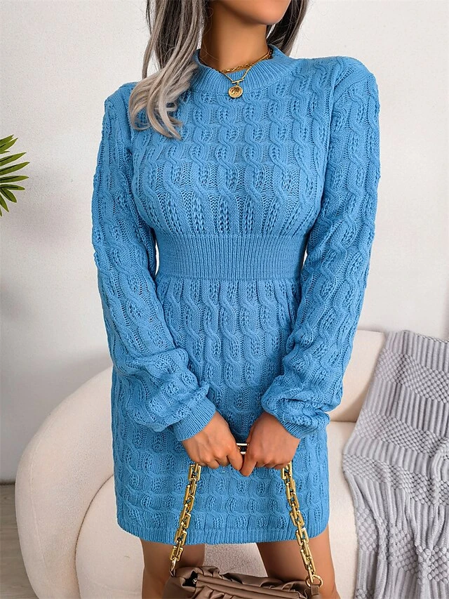 Women’s Sweater Dress Jumper Dress Casual Dress Mini Dress Active Plain Outdoor Casual Holiday Vacation Crew Neck Long Sleeve 2023 Regular Fit Black White Blue S M L