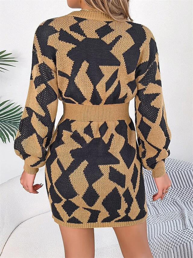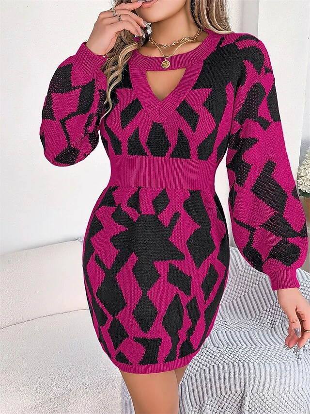 Women’s Sweater Dress Jumper Dress Casual Dress Mini Dress Fashion Geometric Color Block Outdoor Daily Going Out Crew Neck Long Sleeve Cut Out 2023 Loose Fit Green Khaki Rose Red S M L