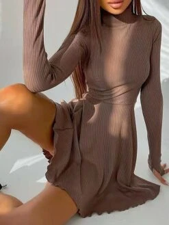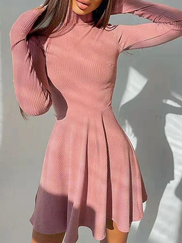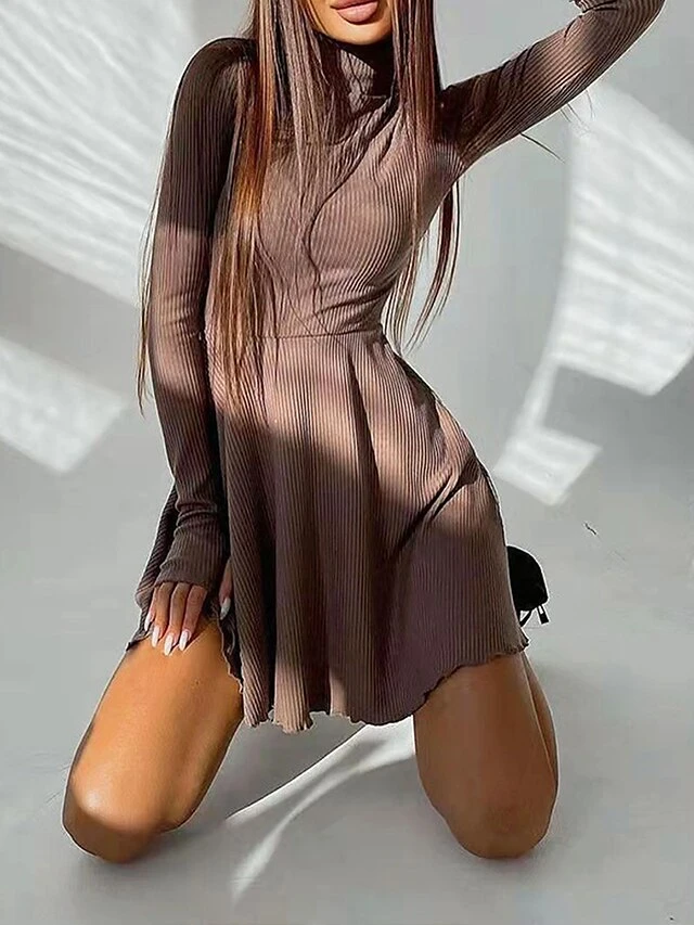 – Neckline: The dress is adorned with a trendy turtleneck neckline, adding a touch of elegance to your look.