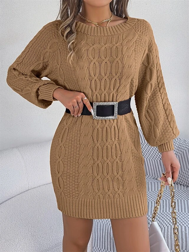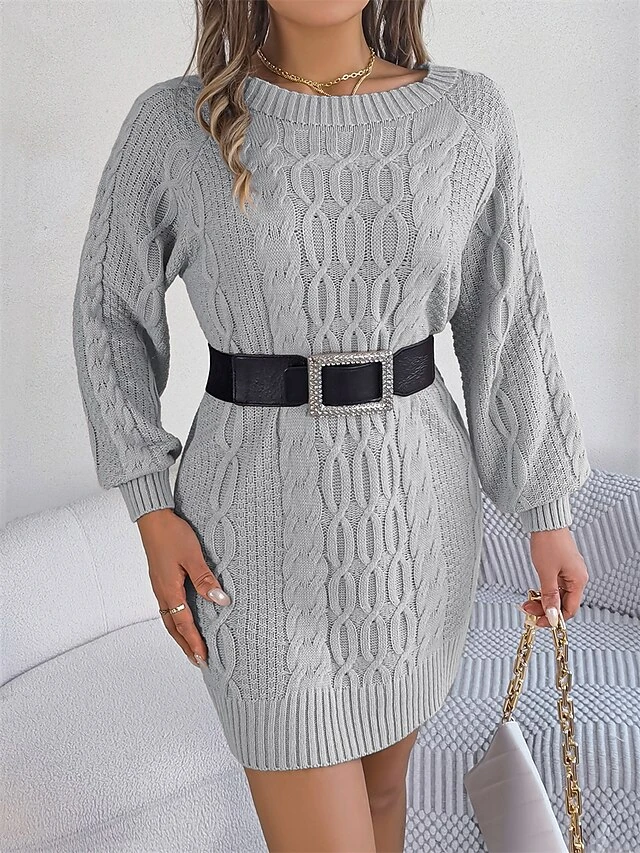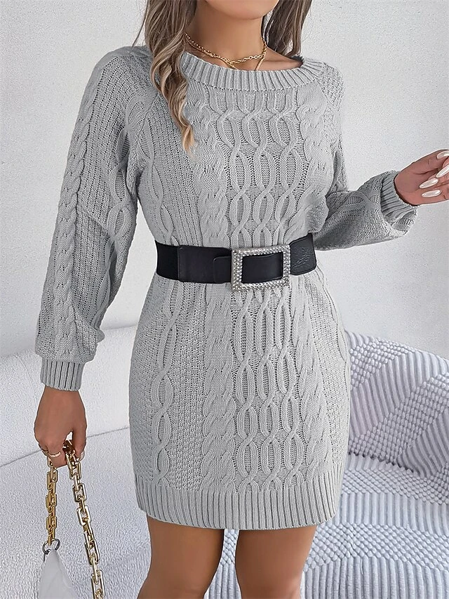 Women’s Sweater Dress Jumper Dress Casual Dress Mini Dress Fashion Pure Color Outdoor Holiday Vacation Going Out V Neck Long Sleeve 2023 Loose Fit Green Khaki Gray S M L