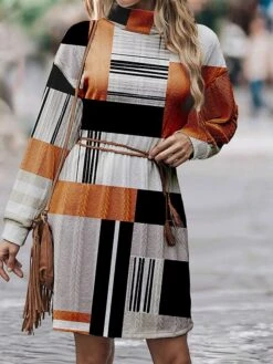 Women’s Sweater Dress Jumper Dress Casual Dress Mini Dress Warm Plaid Outdoor Daily Vacation Going Out Turtleneck Long Sleeve 2023 Loose Fit Blue Orange Light Blue S M L XL XXL 3XL