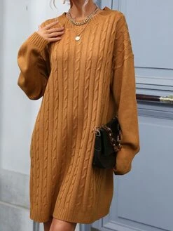 Women’s Sweater Dress Jumper Dress Casual Dress Mini Dress Warm Pure Color Outdoor Casual Daily Going Out Crew Neck Long Sleeve 2023 Loose Fit Camel S M L