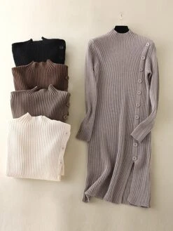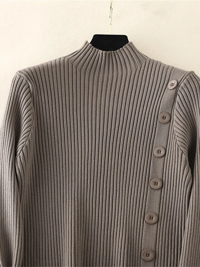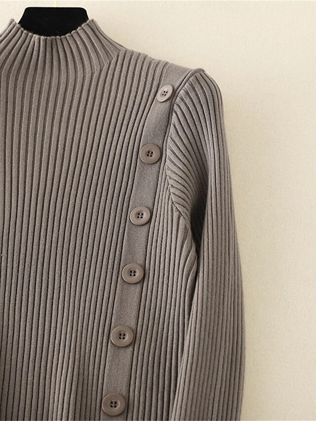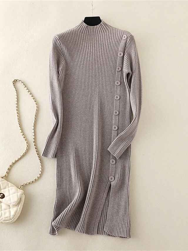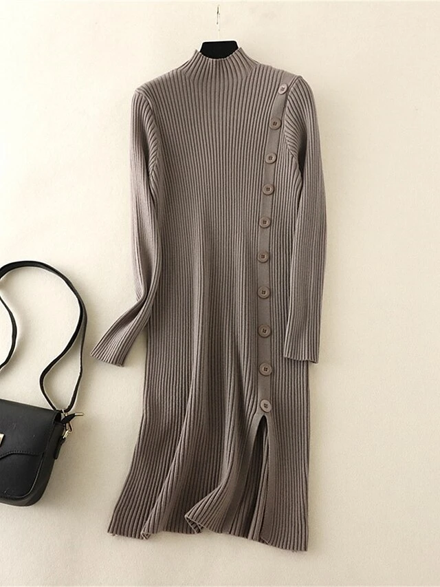 Women’s Sweater Dress Jumper Dress Winter Dress Mini Dress Warm Plain Outdoor Daily Vacation Going Out Turtleneck Long Sleeve Button 2023 Slim Black Brown Khaki One Size
