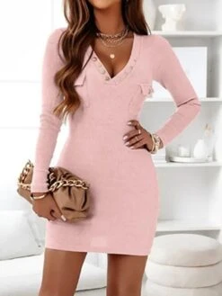 Women‘s Sweater Dress Winter Dress Bodycon Mini Dress Black White Pink Long Sleeve Pure Color Button Fall Winter Autumn V Neck Fashion Winter Dress Vacation Fall Dress 2022 S M L XL XXL 3XL