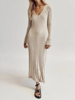 Women’s Sweater Dress Winter Dress Jumper Dress Long Dress Maxi Dress Active Pure Color Outdoor Casual Holiday Vacation V Neck Long Sleeve 2023 Regular Fit Black White Apricot S M L XL XXL 3XL