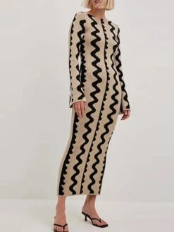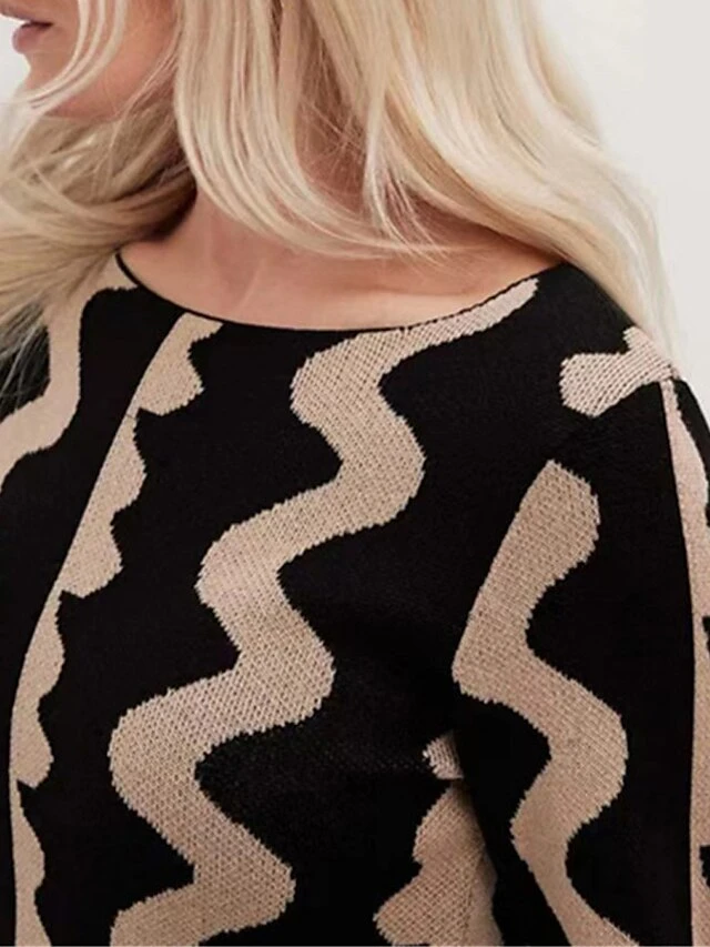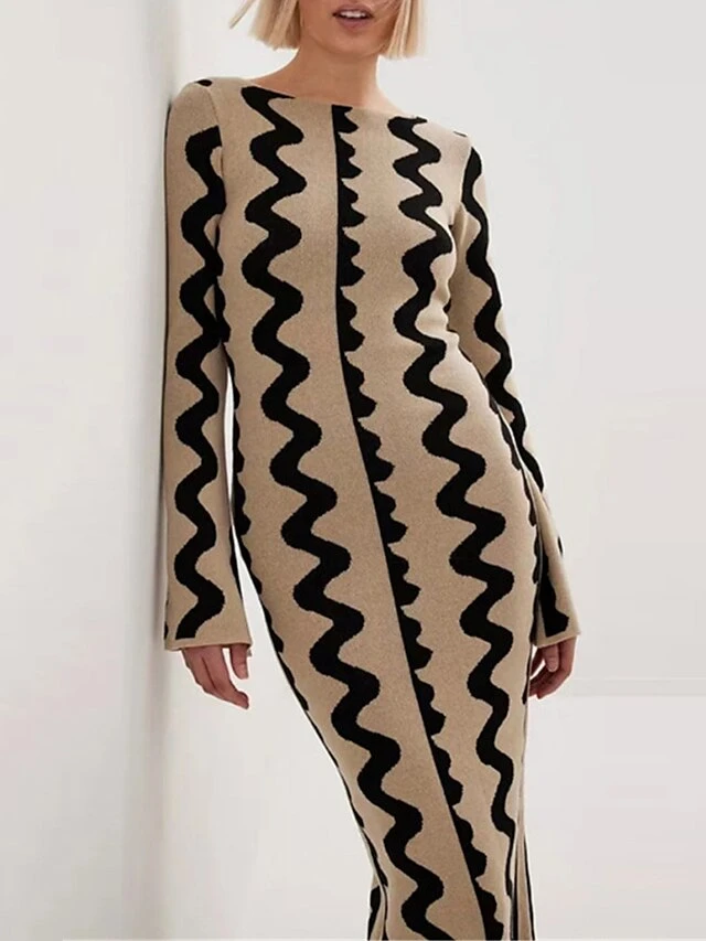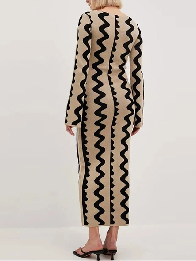 Women’s Sweater Dress Winter Dress Jumper Dress Long Dress Maxi Dress Active Stripe Print Outdoor Street Daily Vacation Crew Neck Long Sleeve Print 2023 Slim Black Khaki S M L XL