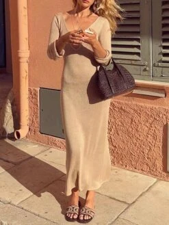 Women’s Sweater Dress Winter Dress Jumper Dress Long Dress Maxi Dress Backless Hollow Out Outdoor Daily Date Active Fashion V Neck Long Sleeve 2023 Regular Fit Black Khaki Color S M L Size