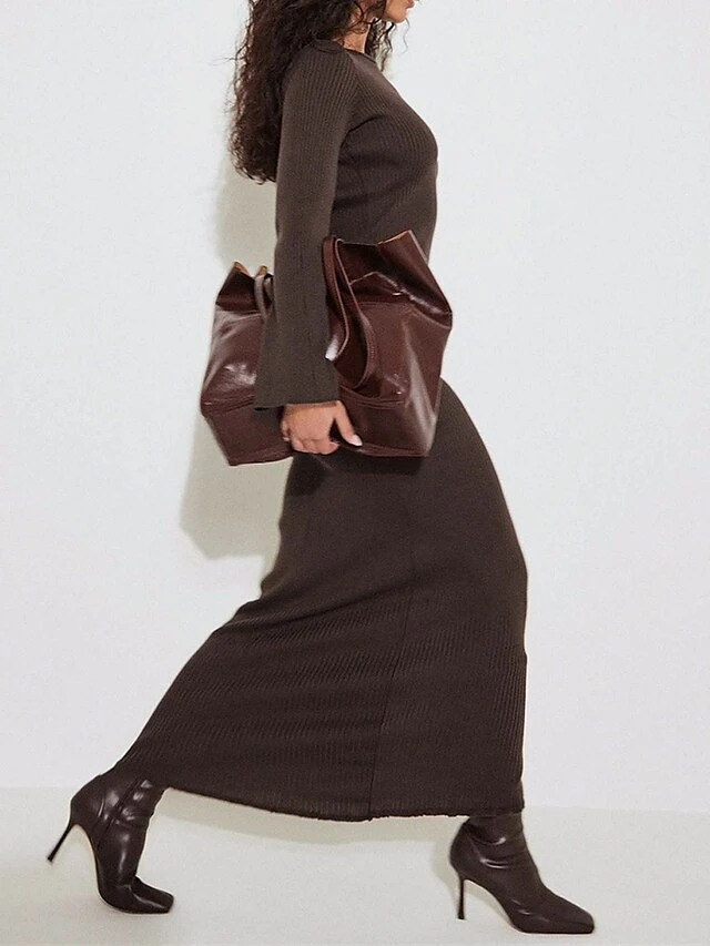 Women’s Sweater Dress Winter Dress Jumper Dress Long Dress Maxi Dress Backless Street Daily Holiday Fashion Streetwear Crew Neck Long Sleeve 2023 Regular Fit Brown Color S M L Size