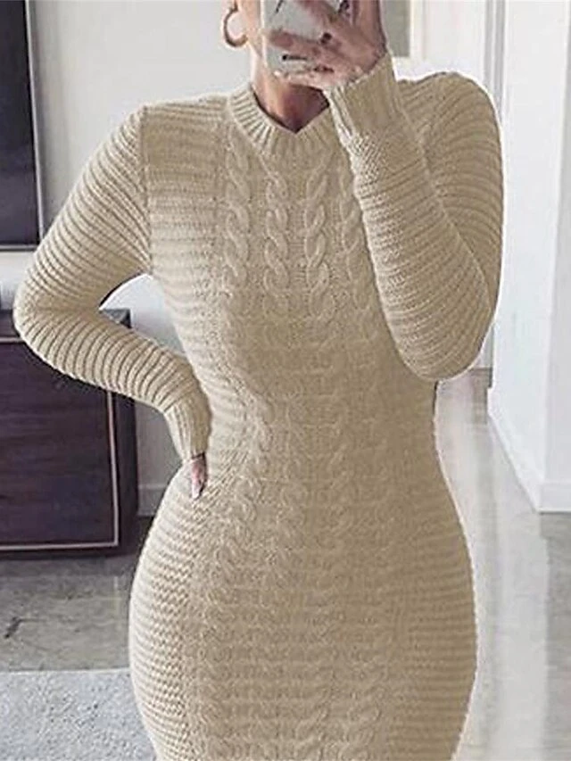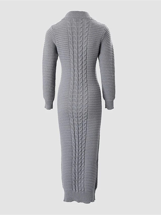 Women’s Sweater Dress Winter Dress Jumper Dress Long Dress Maxi Dress Split Outdoor Street Daily Fashion Sexy Stand Collar Long Sleeve 2023 Slim Beige Gray Color S M L XL XXL Size