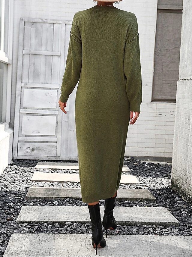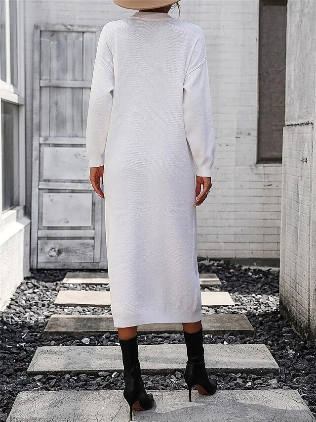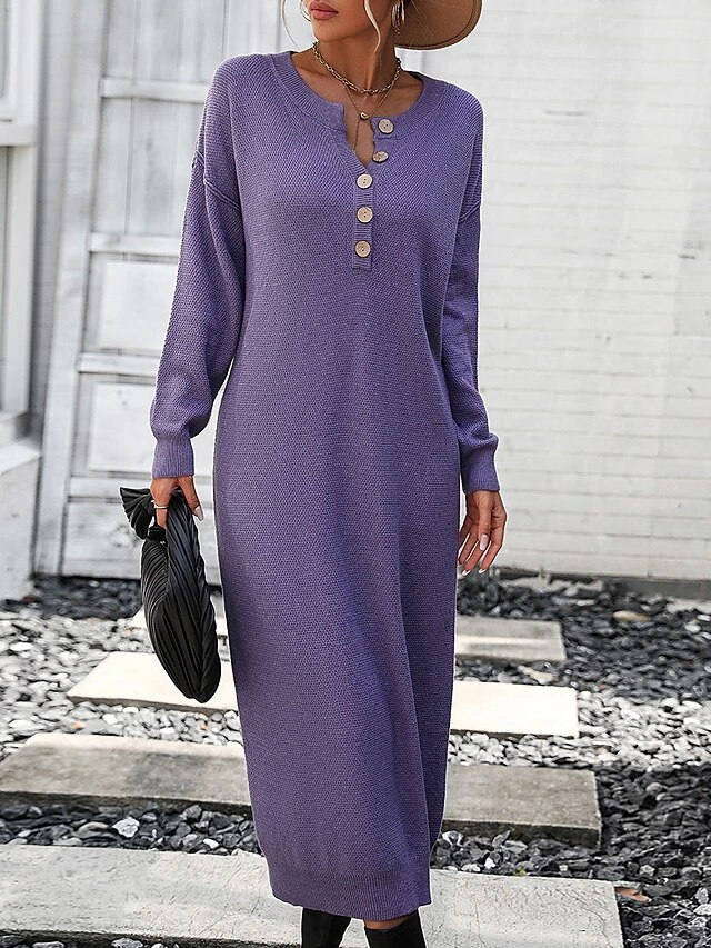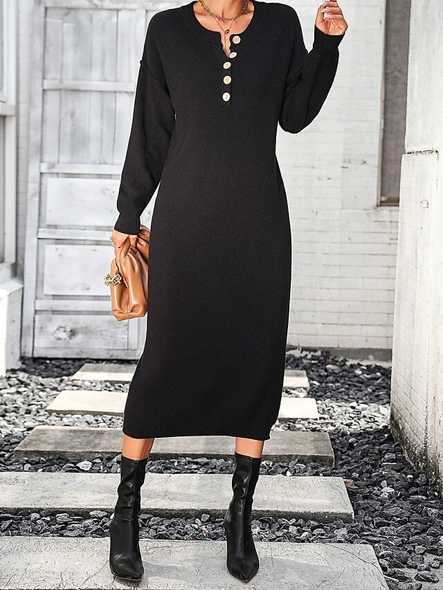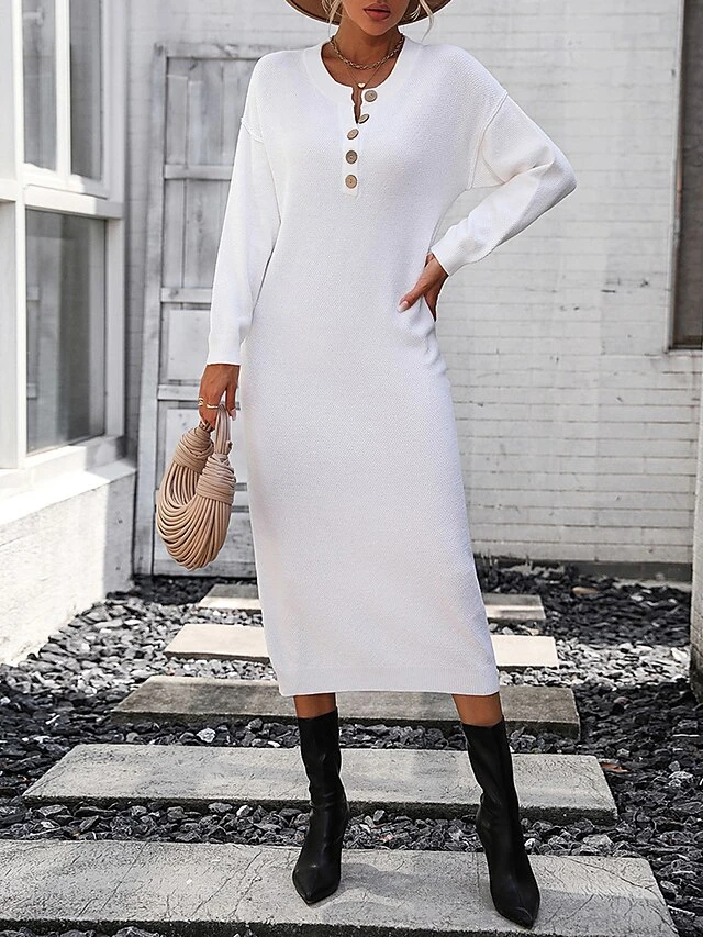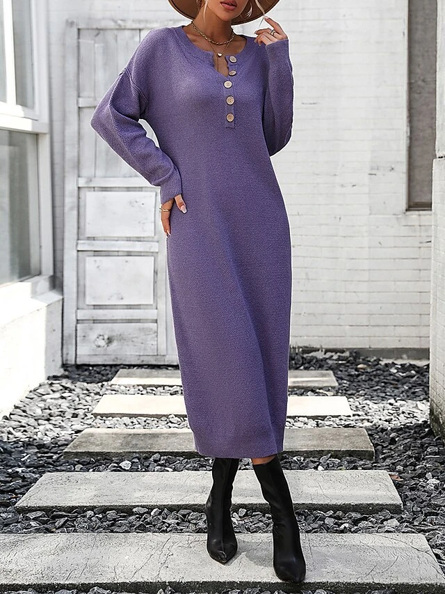 Women’s Sweater Dress Winter Dress Jumper Dress Midi Dress Button Daily Date Going Out Fashion Basic Crew Neck Long Sleeve 2023 Loose Fit Black White Purple Color S M L XL Size