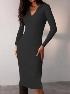 Women’s Sweater Dress Winter Dress Jumper Dress Midi Dress Ribbed Outdoor Work Street Fashion Modern Crew Neck Long Sleeve 2023 Slim Light Grey Color S M L XL Size
