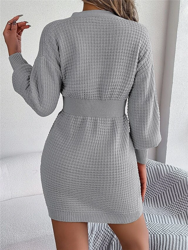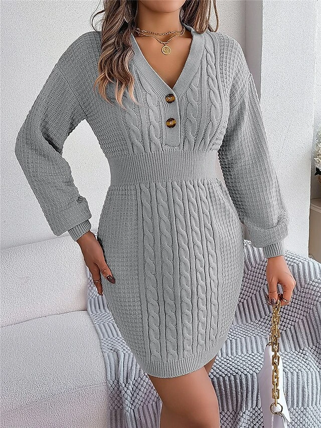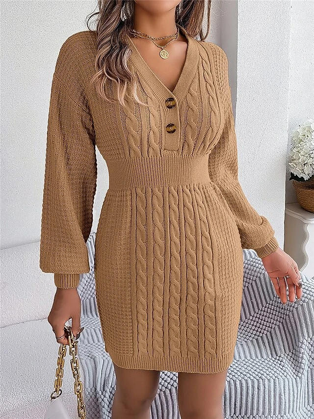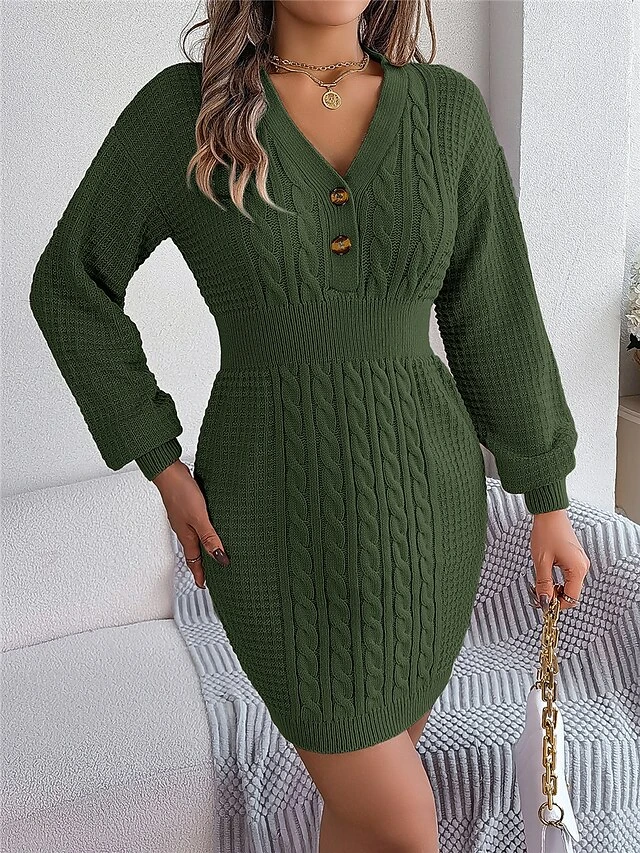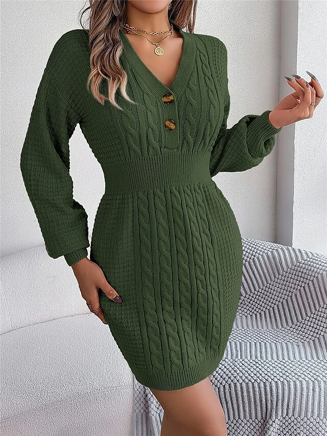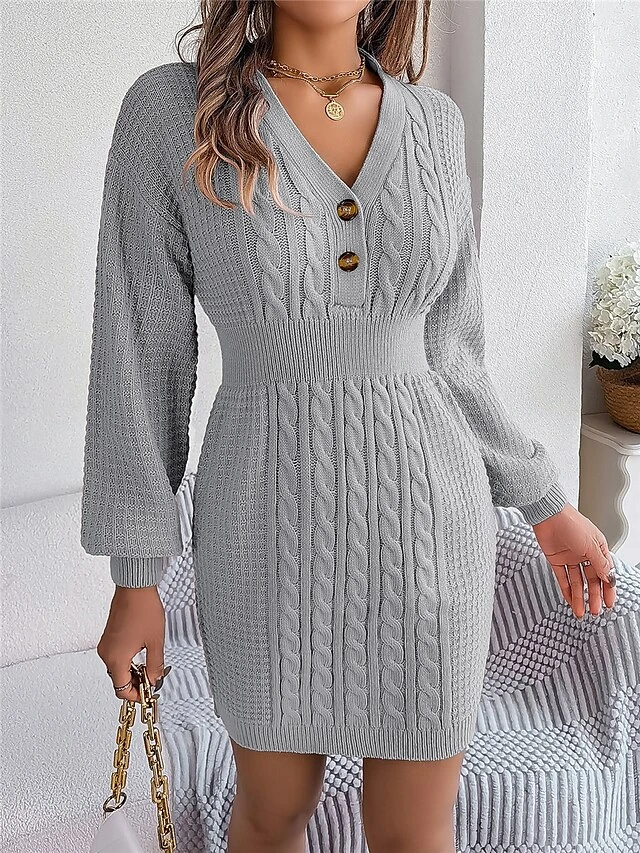 Women’s Sweater Dress Winter Dress Jumper Dress Mini Dress Active Pure Color Outdoor Casual Holiday Vacation V Neck Long Sleeve Button 2023 Regular Fit White Pink Green S M L