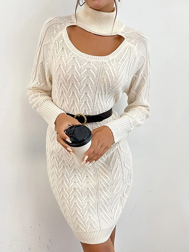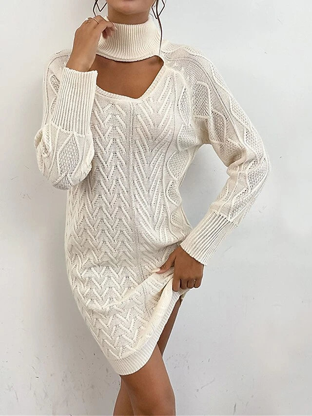Women’s Sweater Dress Winter Dress Jumper Dress Mini Dress Cut Out Outdoor Street Daily Fashion Streetwear Stand Collar Long Sleeve 2023 Loose Fit Apricot Color S M L Size