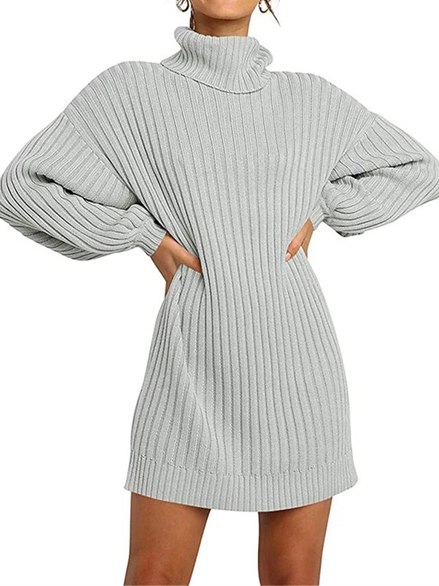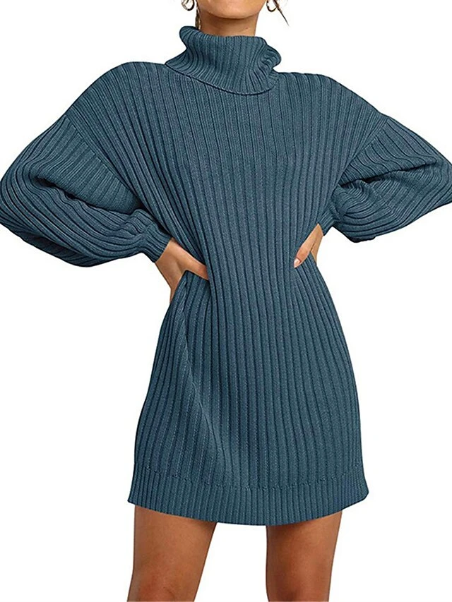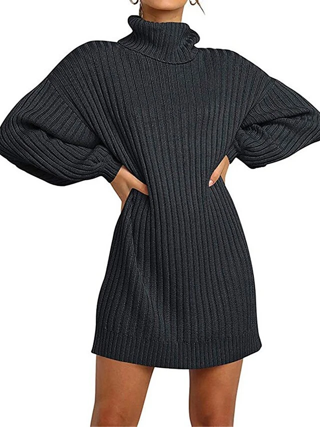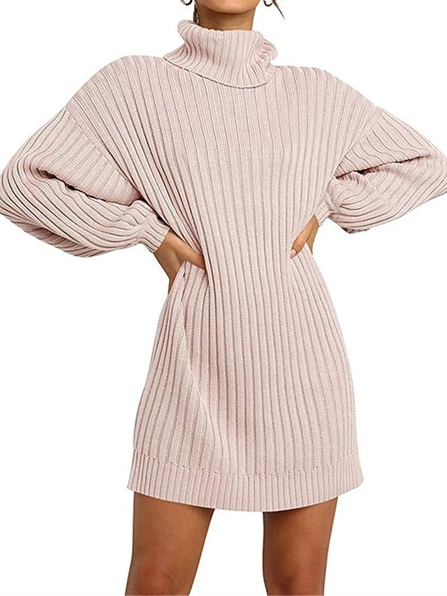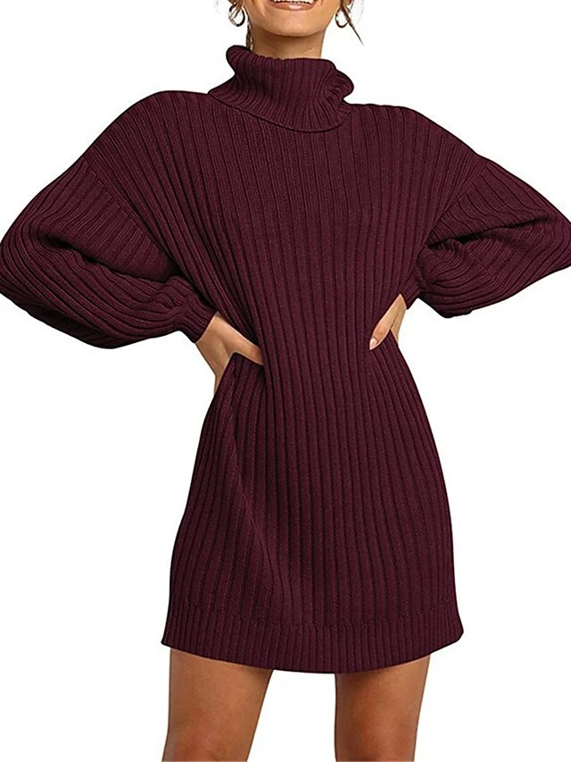 Women’s Sweater Dress Winter Dress Jumper Dress Mini Dress Patchwork Outdoor Street Daily Fashion Streetwear Turtleneck Long Sleeve 2023 Loose Fit Black Pink Wine Color S M L XL XXL Size