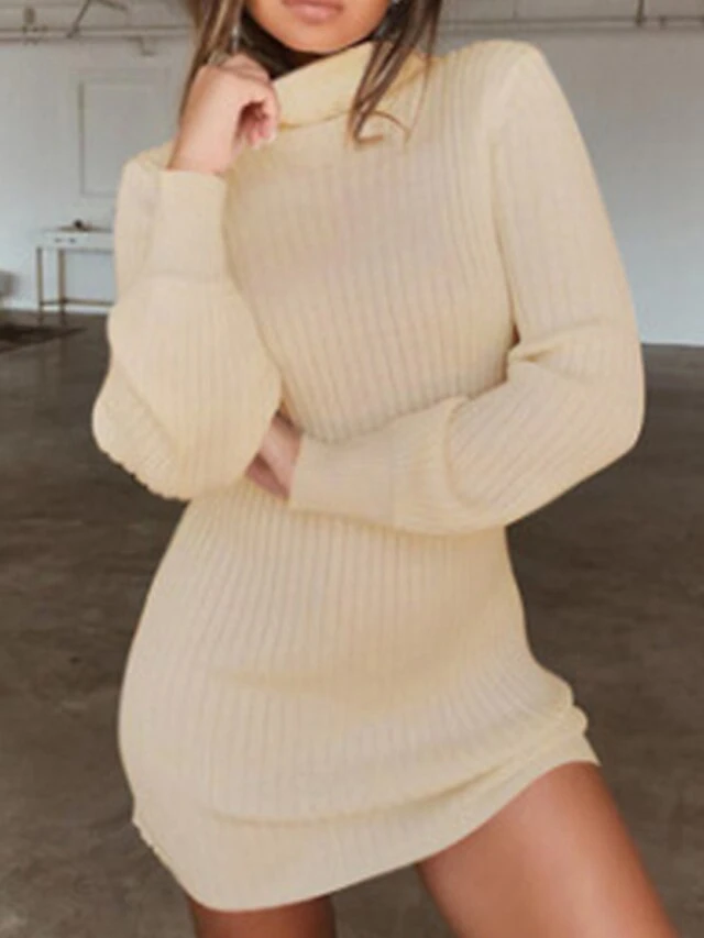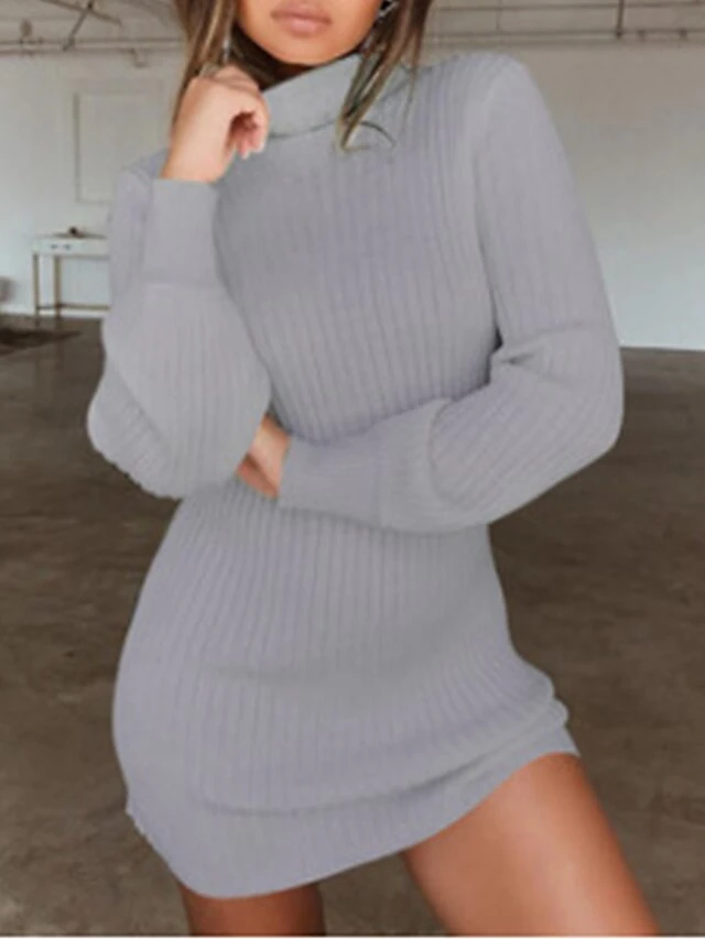 Women’s Sweater Dress Winter Dress Jumper Dress Mini Dress Ribbed Outdoor Street Daily Fashion Streetwear Turtleneck Long Sleeve 2023 Regular Fit Dark Blue Apricot Gray Color S M L XL XXL Size