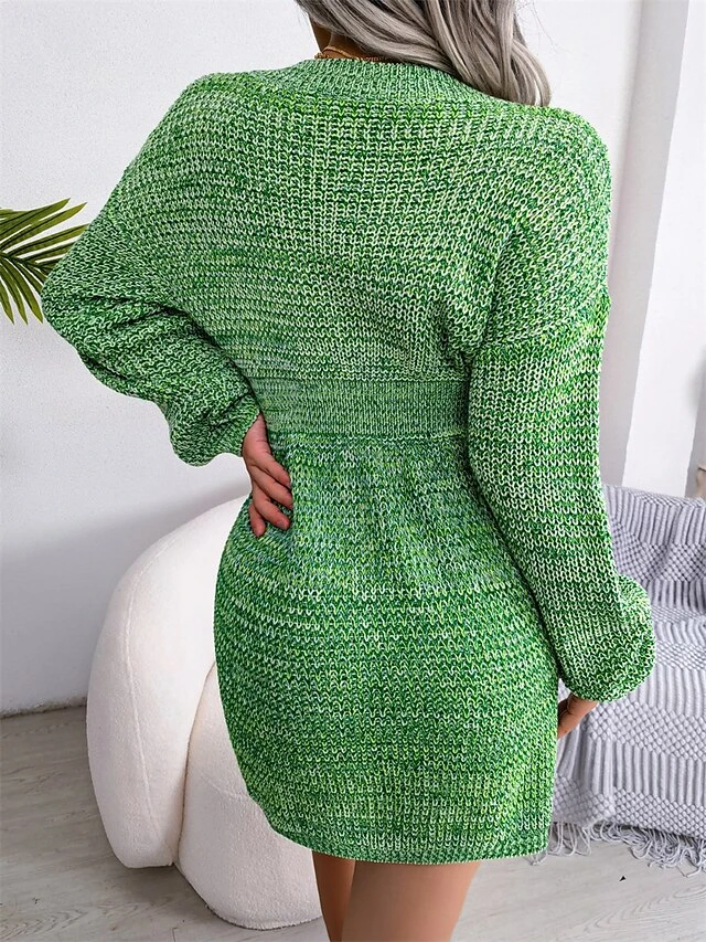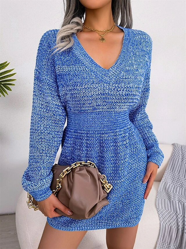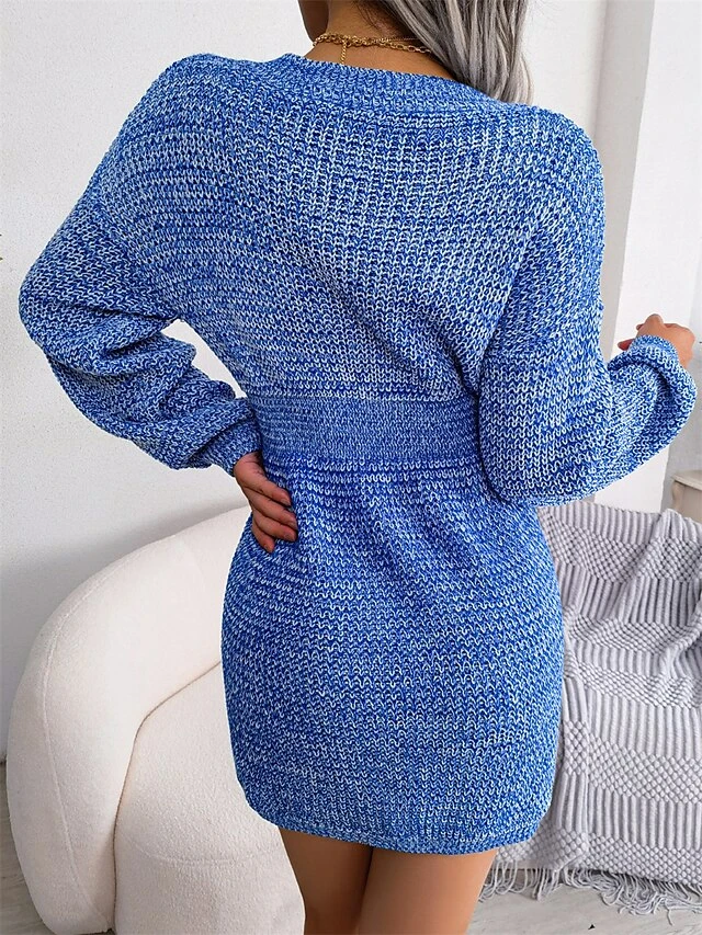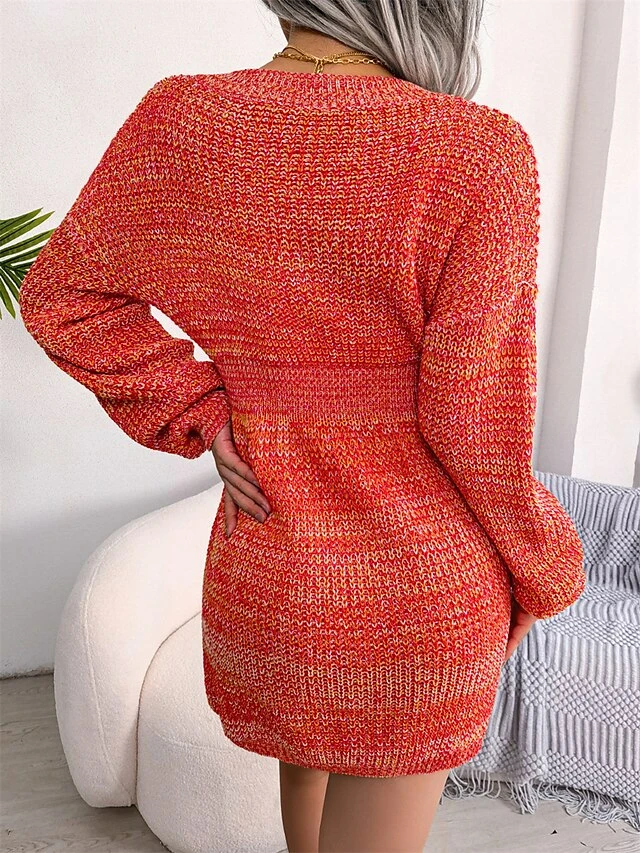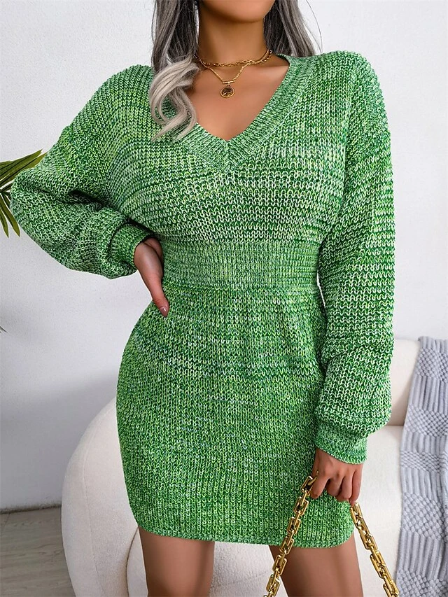 Women’s Sweater Dress Winter Dress Jumper Dress Mini Dress Ruched Daily Date Going Out Active Fashion V Neck Long Sleeve 2023 Regular Fit Red Blue Green Color S M L Size