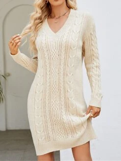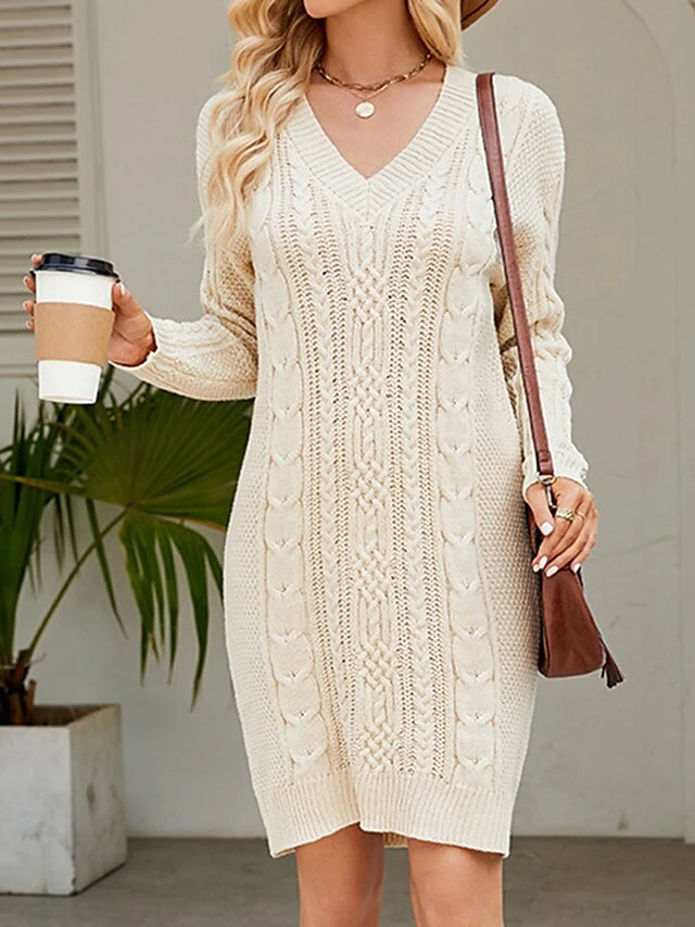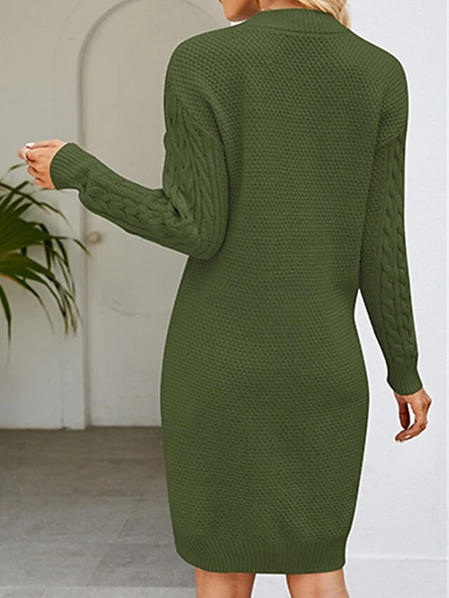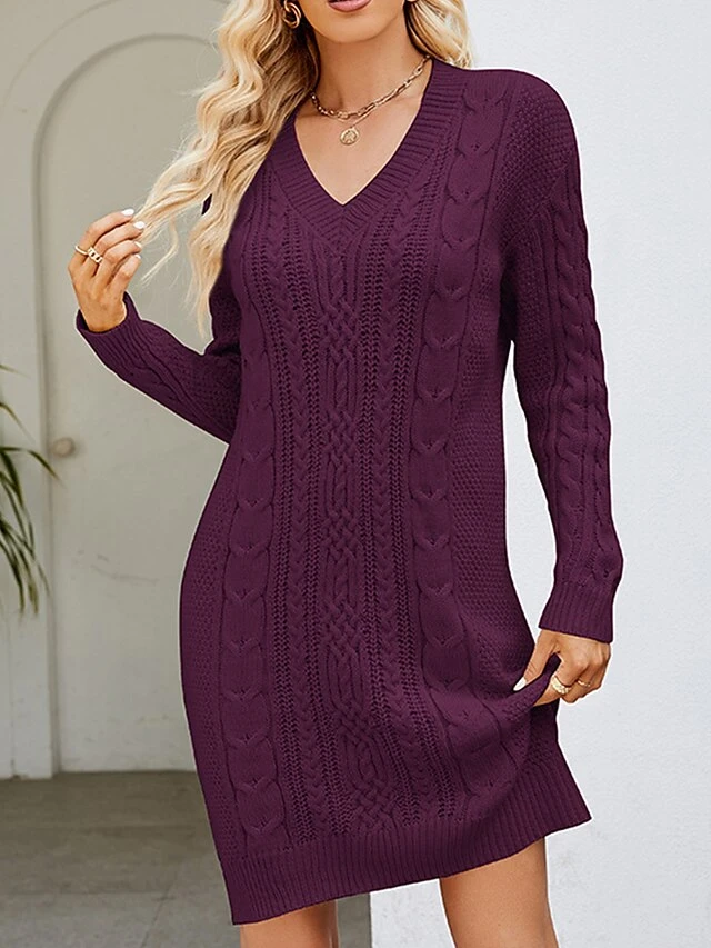 Women’s Sweater Dress Winter Dress Jumper Dress Mini Dress Ruched Outdoor Street Daily Fashion Streetwear V Neck Long Sleeve 2023 Loose Fit Dark Green Purple Dark Blue Color S M L XL XXL Size