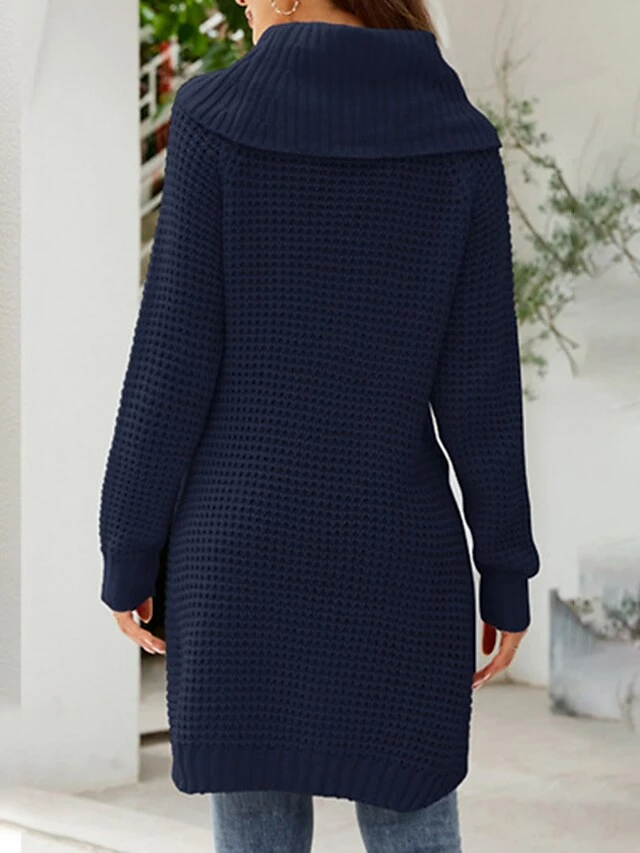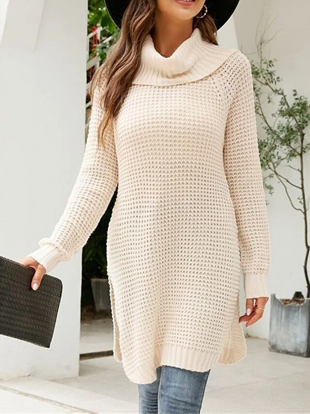 Women’s Sweater Dress Winter Dress Jumper Dress Mini Dress Split Daily Date Going Out Active Fashion Turtleneck Long Sleeve 2023 Loose Fit Dark Blue Beige Color S M L XL Size
