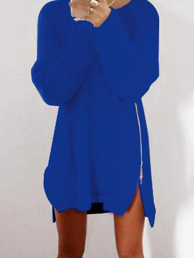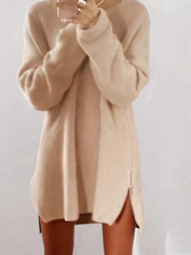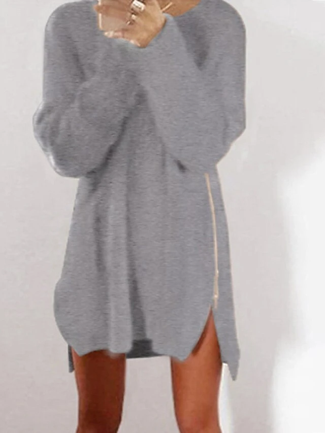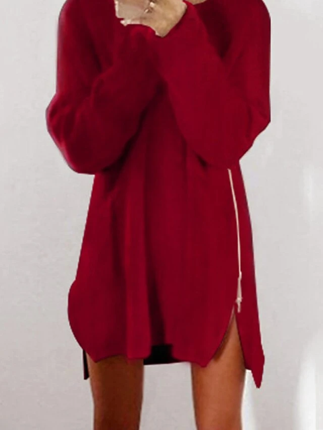 Women‘s Sweater Dress Winter Dress Pink Wine Royal Blue Navy Blue Beige Gray Long Sleeve Pure Color Zipper Winter Fall Crew Neck Casual Boom Sale Dress S M L XL XXL 3XL 4XL