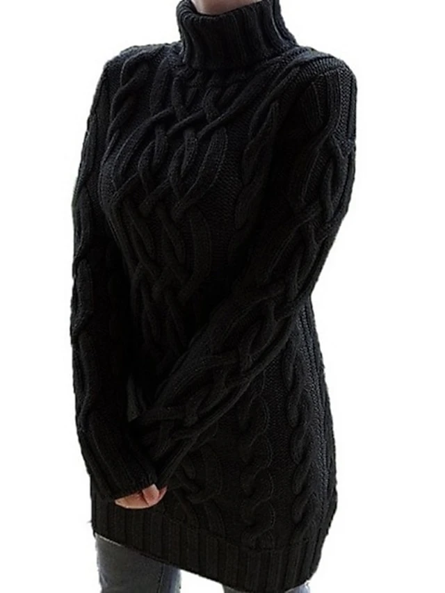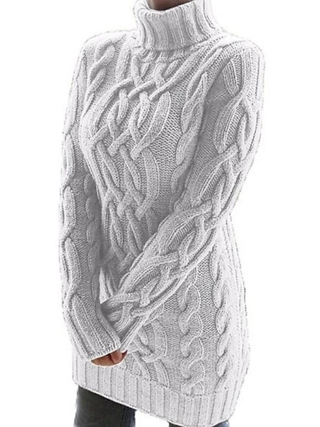 Women‘s Sweater Dress Winter Dress Pullover Knitted Solid Color Basic Casual Chunky Long Sleeve Sweater Cardigans Turtleneck Fall Winter White Black Purple / Regular Fit / Going Out
