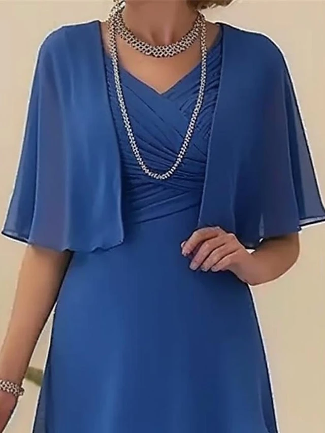 Women’s Two Piece Dress Set Casual Dress Chiffon Dress Outdoor Office Elegant Modern Layered Midi Dress V Neck Half Sleeve Plain Regular Fit Blue Summer Spring M L XL XXL 3XL