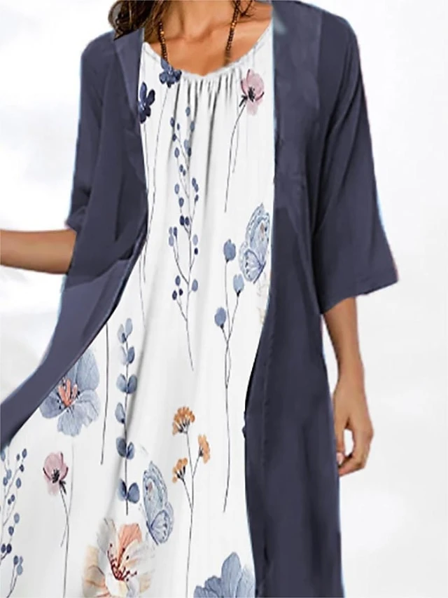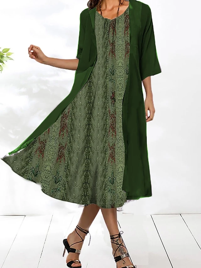 Women’s Two Piece Dress Set Casual Dress Daily Vacation Modern Casual Print Midi Dress Crew Neck Half Sleeve Graphic Floral Loose Fit White Dark Green Summer Spring S M L XL XXL