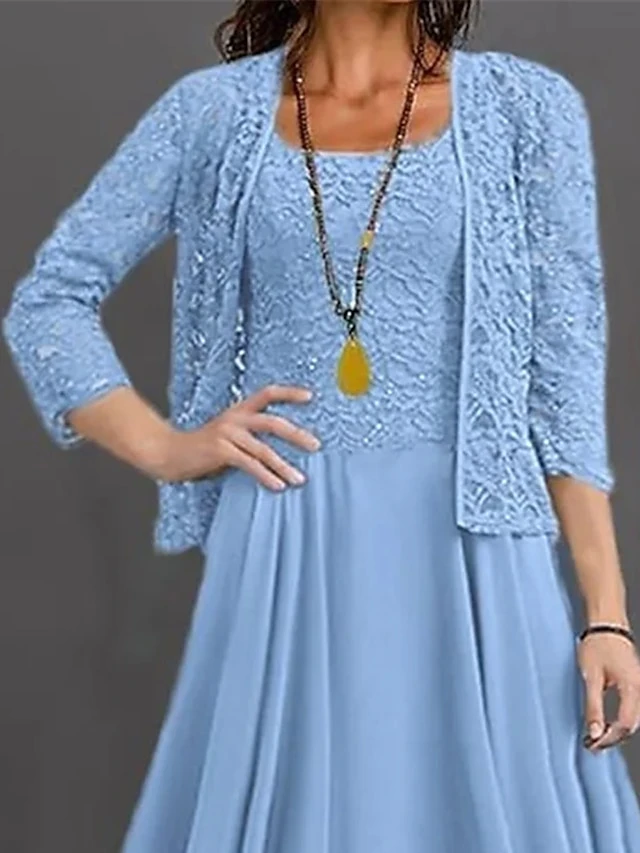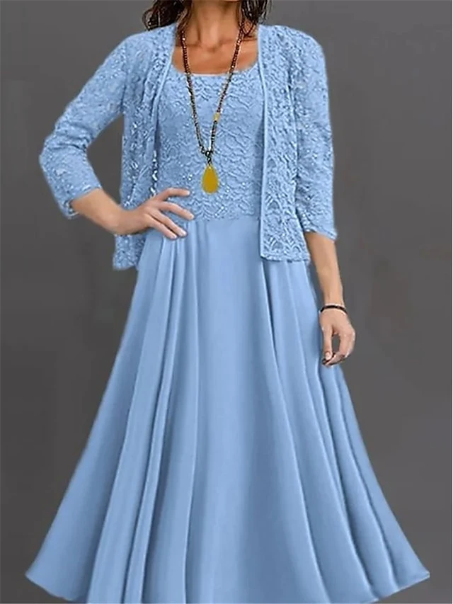 Women’s Two Piece Dress Set Casual Dress Lace Dress Outdoor Daily Fashion Elegant Lace Patchwork Midi Dress Crew Neck 3/4 Length Sleeve Plain Regular Fit Blue Fall Winter S M L XL XXL