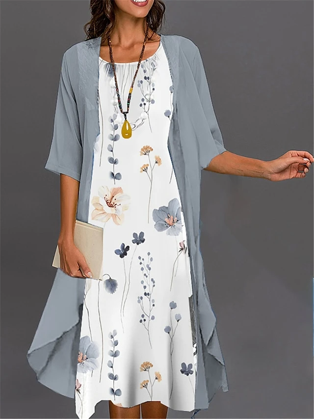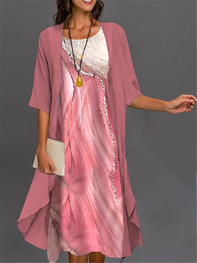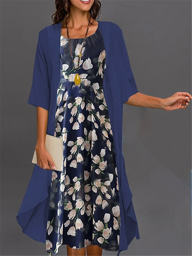 Women’s Two Piece Dress Set Casual Dress Print Black Dress Outdoor Daily Fashion Elegant Print Midi Dress Crew Neck 3/4 Length Sleeve
