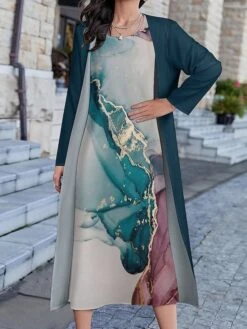 Women’s Two Piece Dress Set Casual Dress Print Dress Daily Holiday Fashion Modern Print Long Dress Maxi Dress Crew Neck Long Sleeve Floral Butterfly Regular Fit Black Blue Sky Blue Summer Spring S M