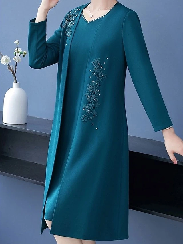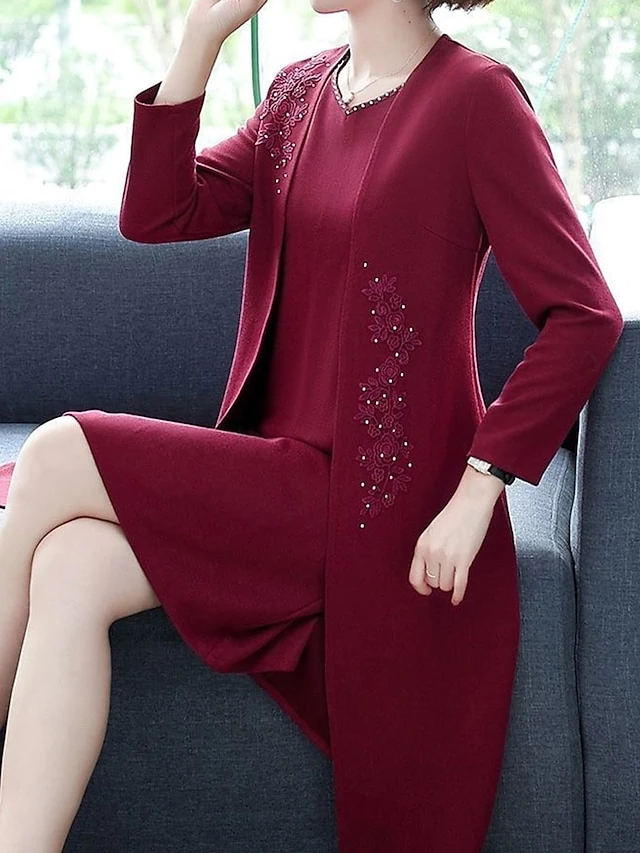 Women’s Two Piece Dress Set Casual Dress Print Dress Home Daily Fashion Streetwear Print Midi Dress V Neck Long Sleeve Floral Regular Fit Red Navy Blue Blue Fall Winter L XL XXL 3XL 4XL