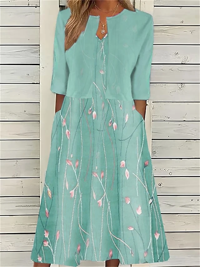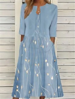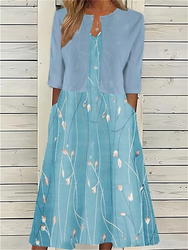 Women’s Two Piece Dress Set Casual Dress Print Dress Outdoor Daily Fashion Elegant Pocket Print Midi Dress Crew Neck Half Sleeve Floral Regular Fit Pink Blue Sky Blue Summer Spring S M L XL XXL
