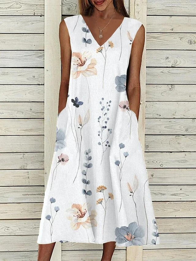 Women’s Two Piece Dress Set Casual Dress Print Dress Outdoor Daily Fashion Elegant Pocket Print Midi Dress V Neck Half Sleeve Floral Regular Fit Pink Blue Purple Summer Spring S M L XL XXL