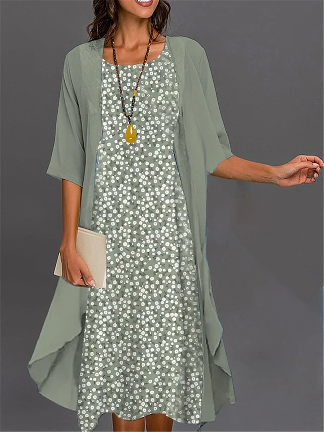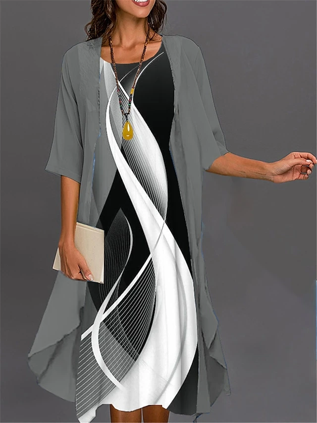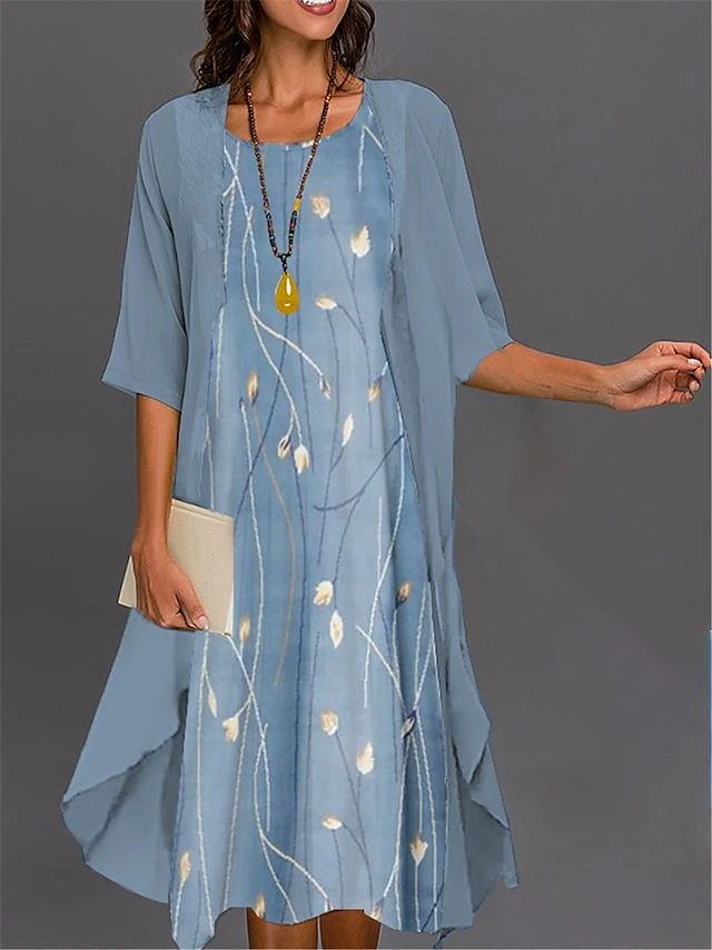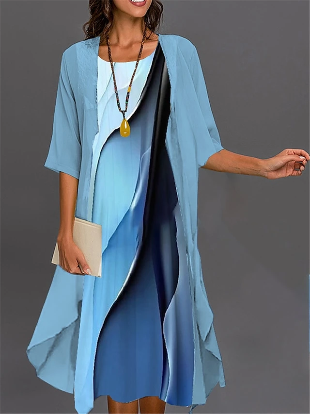 Women’s Two Piece Dress Set Casual Dress Print Dress Outdoor Daily Fashion Elegant Print Midi Dress Crew Neck 3/4 Length Sleeve Floral Geometric Loose Fit Black Royal Blue Blue Summer Spring S M L XL