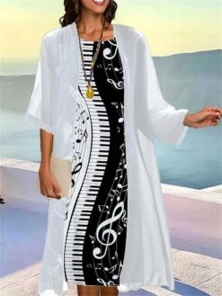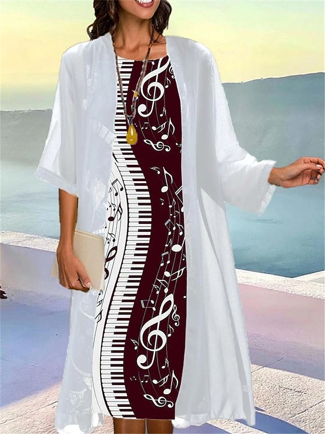 Women’s Two Piece Dress Set Casual Dress Print Dress Outdoor Daily Fashion Elegant Print Midi Dress Crew Neck 3/4 Length Sleeve Graphic Regular Fit Black Wine Blue Summer Spring S M L XL XXL