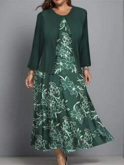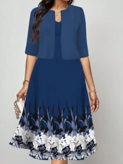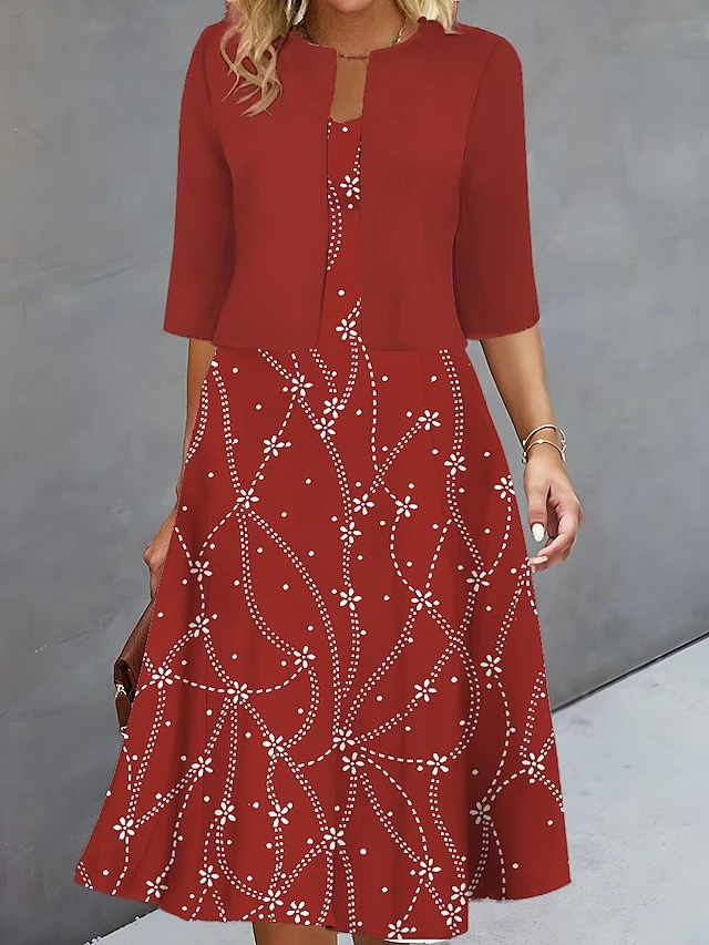 Women’s Two Piece Dress Set Casual Dress Print Dress Outdoor Daily Fashion Elegant Print Midi Dress V Neck Half Sleeve Floral Geometric Regular Fit Silver Wine Navy Blue Fall Winter S M L XL XXL