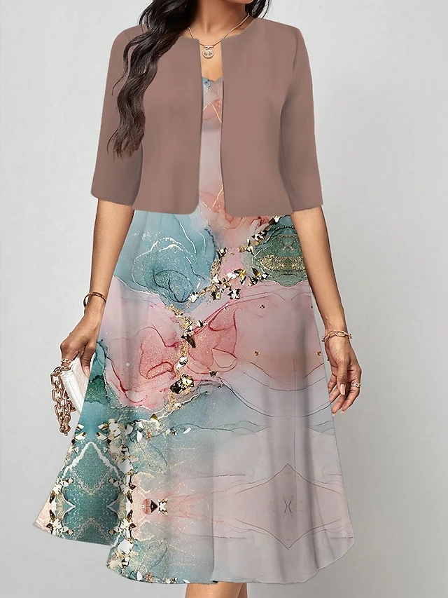 Women’s Two Piece Dress Set Casual Dress Print Dress Outdoor Daily Fashion Elegant Print Midi Dress V Neck Half Sleeve Floral Regular Fit Royal Blue Blue Fuchsia Fall Winter S M L XL XXL