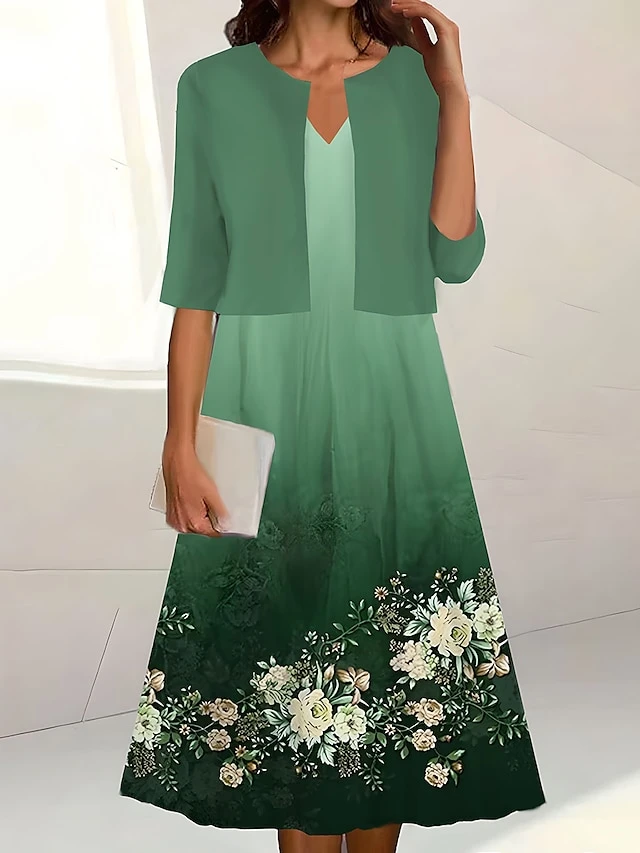 Women’s Two Piece Dress Set Casual Dress Print Dress Outdoor Daily Fashion Elegant Print Midi Dress V Neck Half Sleeve Floral Stripe Regular Fit White Pink Blue Summer Spring S M L XL XXL