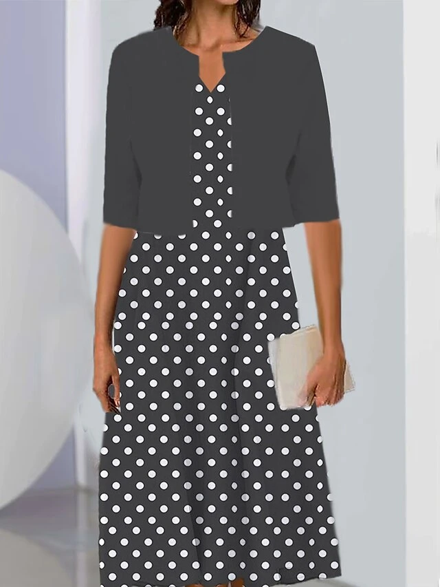 Women’s Two Piece Dress Set Casual Dress Print Dress Outdoor Daily Fashion Elegant Print Midi Dress V Neck Half Sleeve Polka Dot Regular Fit Black Pink Wine Summer Spring S M L XL XXL