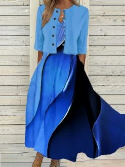 Women’s Two Piece Dress Set Casual Dress Print Dress Outdoor Daily Fashion Modern Button Pocket Long Dress Maxi Dress Crew Neck Half Sleeve Ombre Marble Print Regular Fit Blue Summer Spring S M L XL