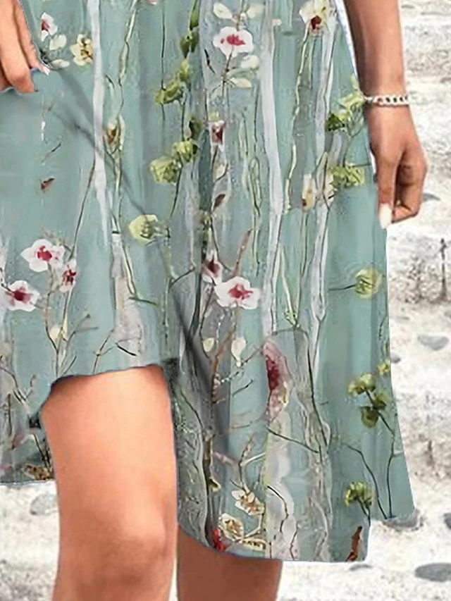 Women’s Two Piece Dress Set Casual Dress Print Dress Outdoor Daily Fashion Streetwear Knot Front Print Midi Dress V Neck Half Sleeve Floral Regular Fit Green Summer Spring S M L XL XXL