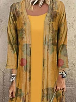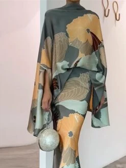 Women’s Two Piece Dress Set Casual Dress Print Dress Outdoor Daily Fashion Streetwear Print Mini Dress V Neck Half Sleeve Leaf Loose Fit Green Summer Spring S M L XL XXL