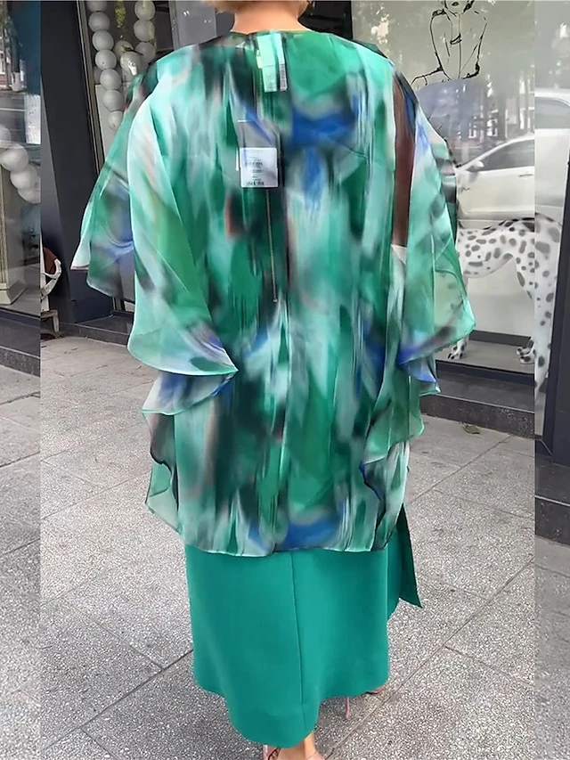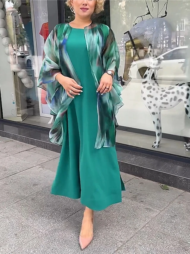 Women’s Two Piece Dress Set Casual Dress Print Dress Outdoor Date Fashion Elegant Print Long Dress Maxi Dress Crew Neck 3/4 Length Sleeve Ombre Loose Fit Green Fall Winter S M L XL XXL