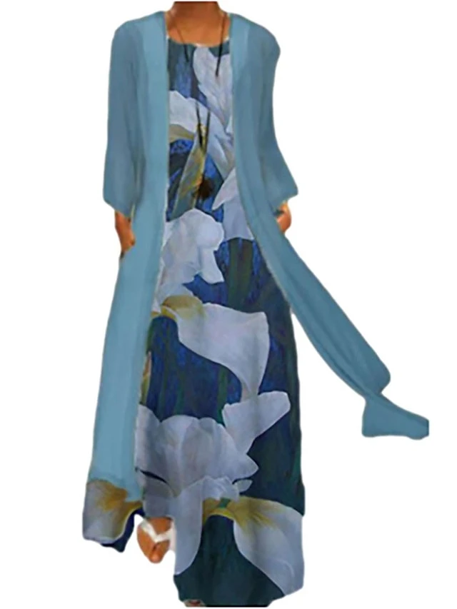 Women’s Two Piece Dress Set Casual Dress Shift Dress Daily Going Out Casual Pocket Print Maxi Dress Crew Neck 3/4 Length Sleeve Floral Loose Fit Light Green Pink Blue Summer Spring M L XL XXL XXXL