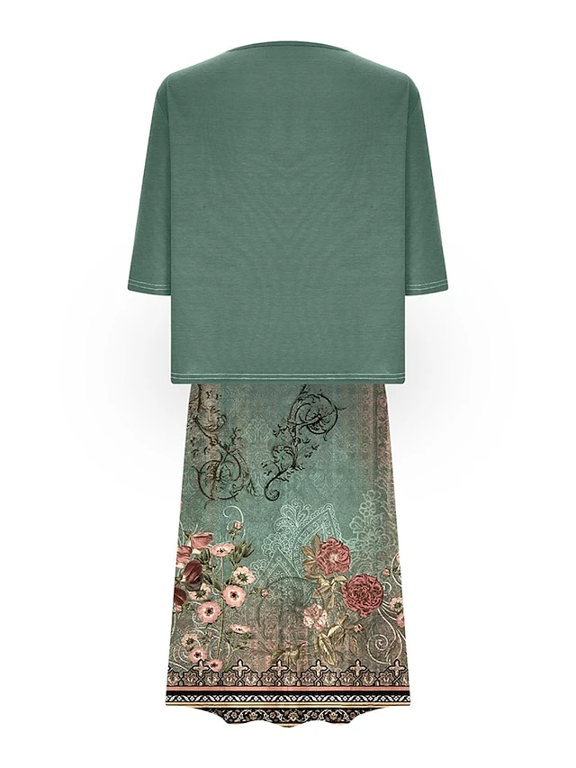 Women’s Two Piece Dress Set Casual Dress Shift Dress Daily Going Out Fashion Casual Pocket Print Midi Dress V Neck 3/4 Length Sleeve Floral Loose Fit Navy Blue Royal Blue Dark Green Summer Spring S M