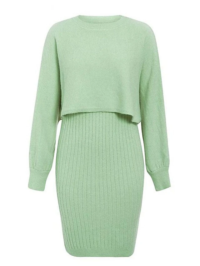 Women’s Two Piece Dress Set Casual Dress Skirt Set Daily Going Out Fashion Streetwear Print Mini Dress Crew Neck Long Sleeve Plain Regular Fit Black Yellow Light Green Fall Winter M